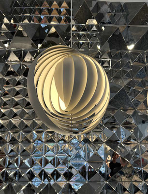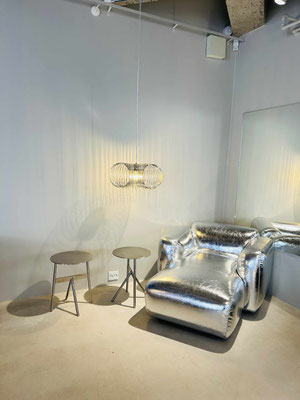 Immer wieder schön ist es bei &Tradition. Auch Chrom war eines der bestimmenden Themen, z.B. die Verner Panton-Leuchten „Topan“ oder auch „VP6“ von &Tradition. Für Liebhaber sei hier auch das von &Tradition kuratierte, neu eröffnete Design-Hotel „Petra“ empfohlen.