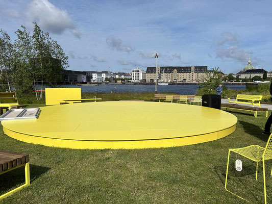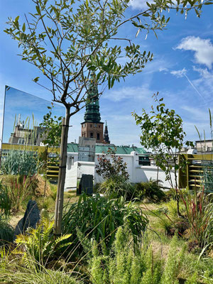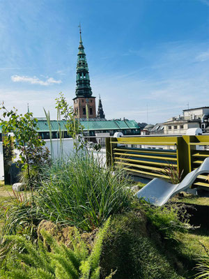 Mein erster Weg führt mich jedes Jahr zu Muuto. Hier gab es dieses Jahr eine wunderbar gestaltete Oase mit Aussicht über die Stadt auf dem Dach des Headquarters in der Ostergade: Grünes, Düfte, Vogelgezwitscher und die Installation „Grounded by Nature“. Die Landschaftsinstallation von Kindastudios hat die Bank „Dream View Bench“ von Lise Vester mit ihrer organischen Form – die sanfte Rundungen sollen einen positiven Effekt auf Körper und Geist haben – perfekt in Szene gesetzt.