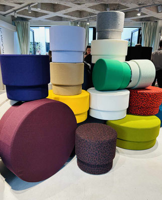 Weg mit den beigefarbenen Wohnlandschaften! Nicht nur im Showroom der Glaskünstlerin Helle Mardahl ging es qietschbunt zu, sondern auch bei Montana und im neuen Showroom der deutschen Sofafirma Bretz, die erstmalig bei den 3daysofdesign vertreten war. Statement prints auf Polstern: Streifen, Karos und Muster wie Animal-Prints waren z.B. bei Bodum zu sehen.